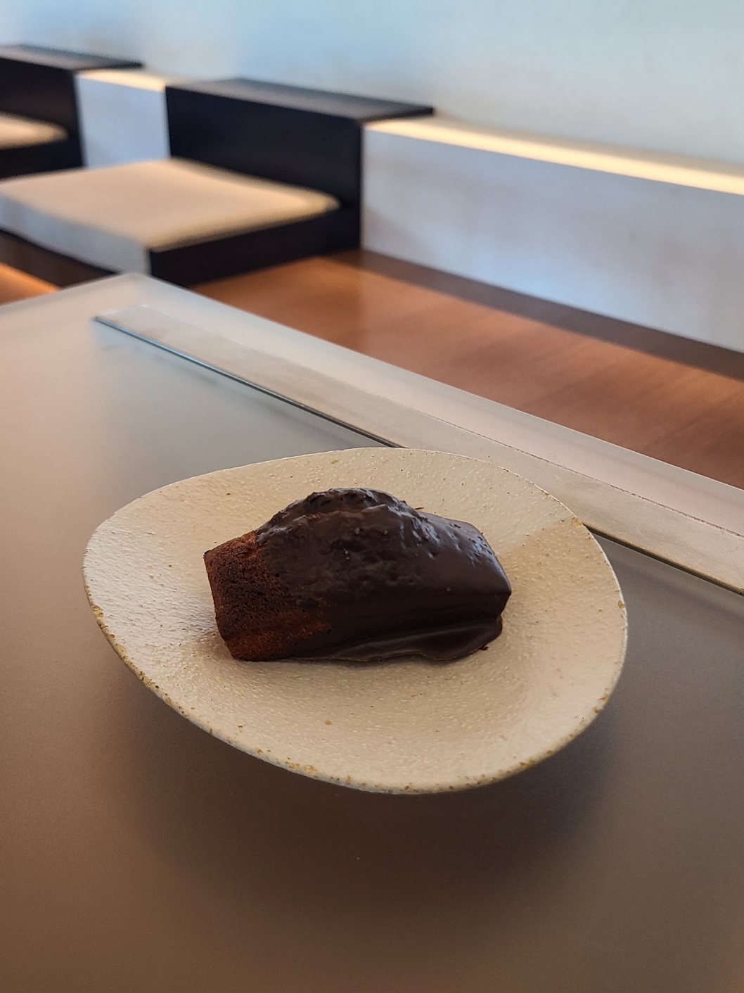 음료를 마시다가 빵냄새가 좋게 나서 디저트인 초코 휘낭시에를 주문하여서 먹었습니다. 초코 휘낭시에 맛은 보통 맛이었습니다.