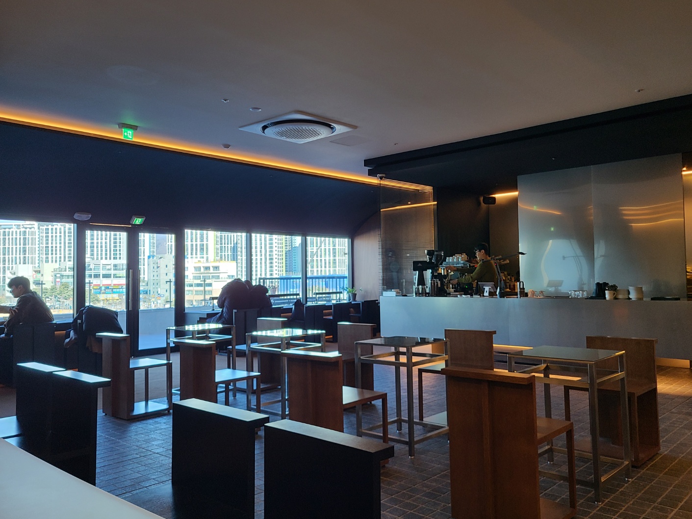 입구는 다른 카페에 비해 화려하지 않았고 매장 분위기는 어두운 조도에 모던한 느낌의 카페입니다.