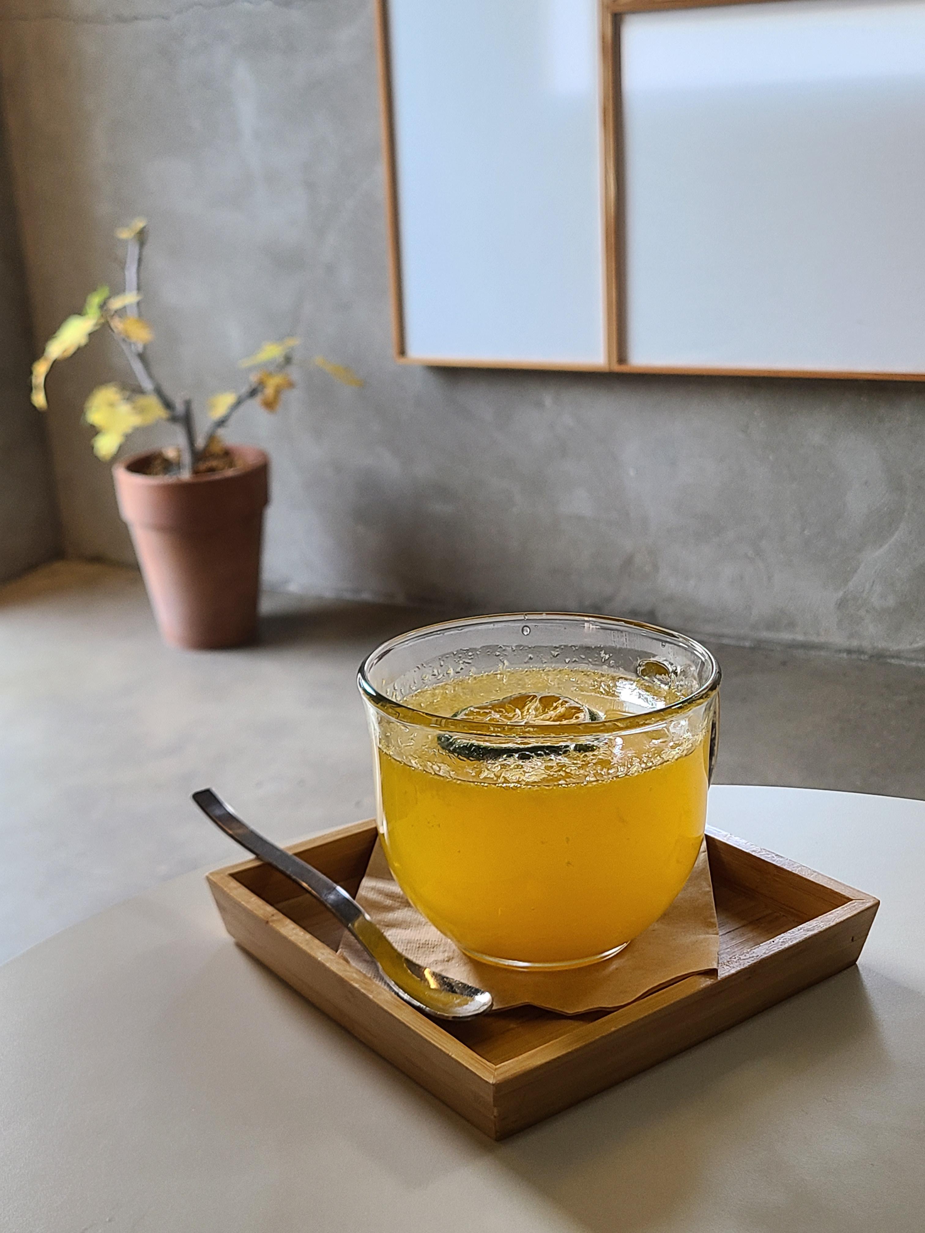 제주도에서 맛있게 먹었던 청귤차가 메뉴에 있길래 반가운 마음에 청귤차를 시켰습니다. 제주도에서 먹었던 청귤차의 맛은 아니였지만 추운 날씨에 따뜻한 차가 먹고 싶었는데 충분히 만족스러웠습니다.