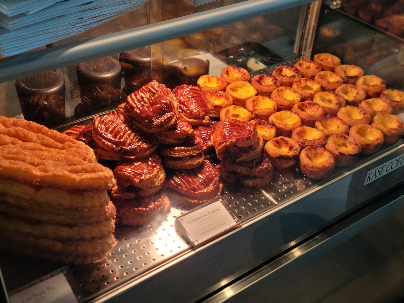 아메라카노와 라떼 에그타르트를 주문했습니다. 에그타르트는 얼마 전 다녀왔던 홍콩의 에그타르트같은 진한 맛은 아닐지라도 괜찮은 맛이었습니다. 음료들도 빵류와 먹기 좋았습니다. 에그타르트 외에도 휘낭시에같은 디저트들도 먹음직스럽게 보였습니다